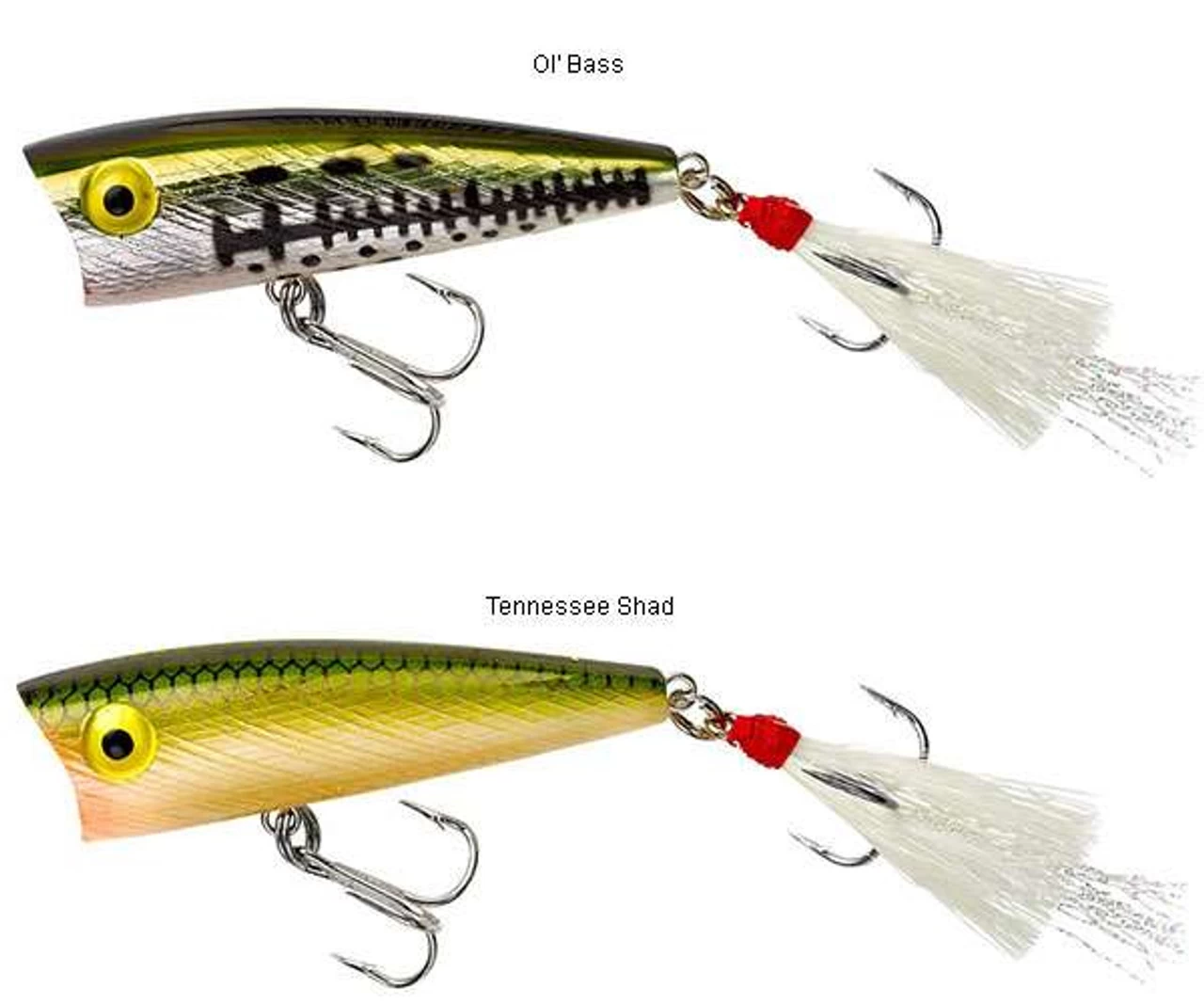 The Rebel P50 Teeny Pop-R has all of the features that made the larger version the most infamous lure in bass tournament history. The dressed back treble of the Rebel P50 Teeny Pop-R features flashy mylar, and the concave mouth chugs and pops on the surface to attract strikes. This small size catches bass, panfish and other gamefish with some of the most exciting topwater strikes you’ll ever experience.