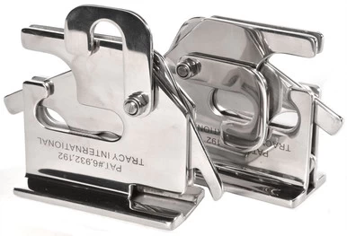 Tracy International QR-BRKT Quick Release Bracket Set. Stainless steel brackets for Tracy Yacht Boarding Stairs and Deck to Dock Step, designed to slide into BL-BRKT Tracy Brackets, sold separately.